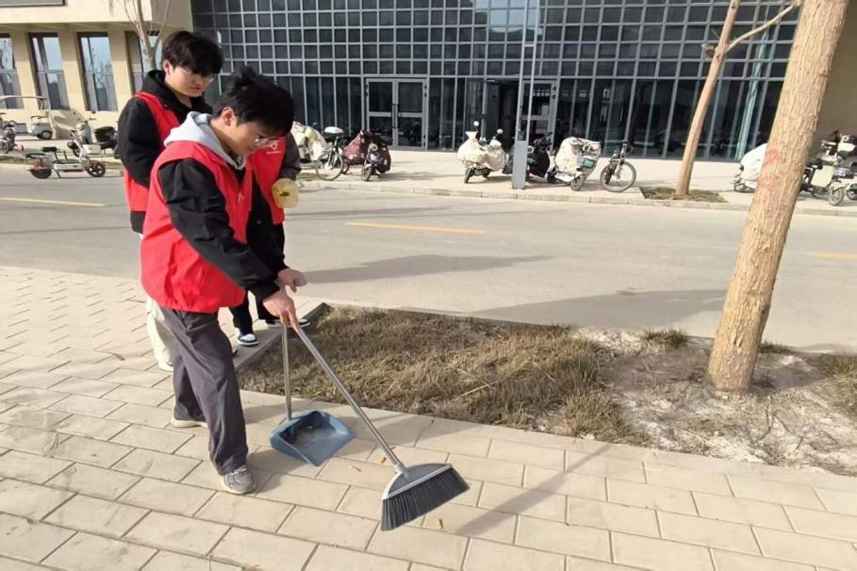 活动中,志愿者们身着统一志愿马甲,手持清洁工具,分工清扫教学楼周边、绿化带、主干道等区域,捡拾杂物、擦拭设施、清理卫生死角,尽显责任与担当。