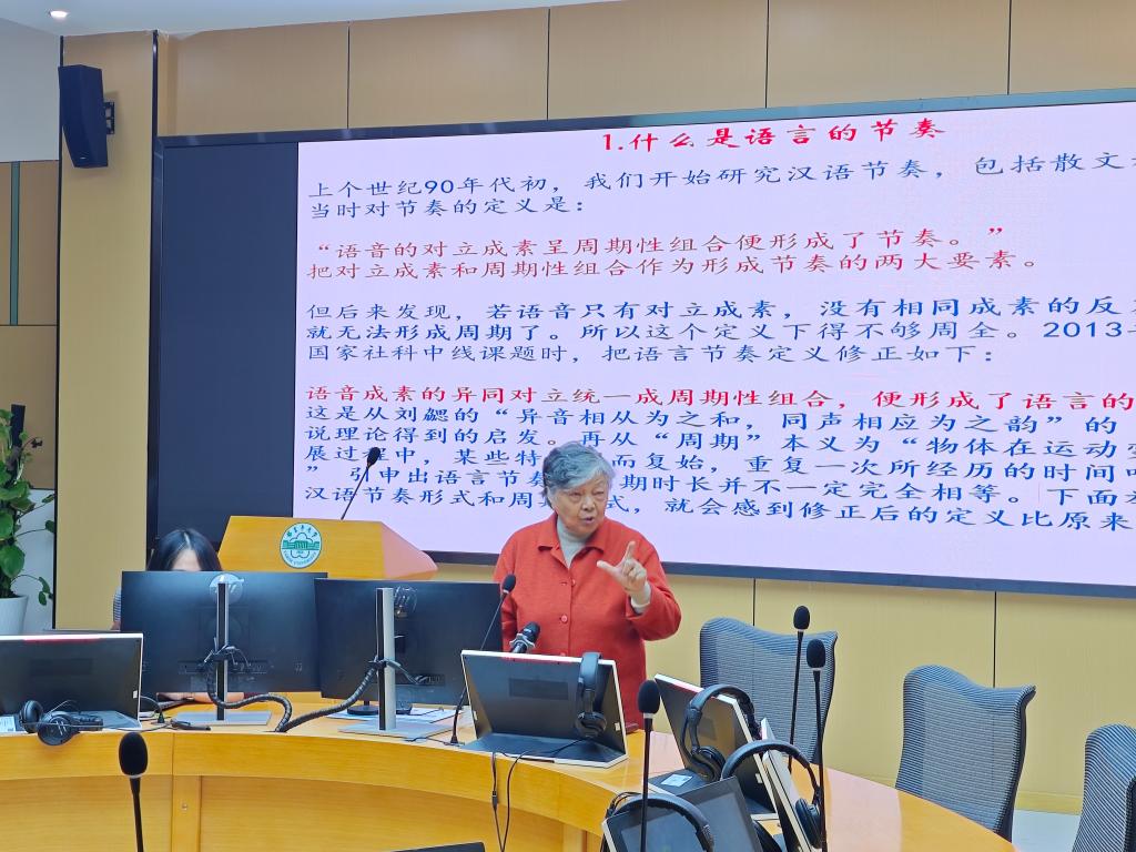 2025年10月13日上午,浙江大学现代汉语教授、享受国务院特殊津贴的吴洁敏教授,在yl9193永利集团与yl9193永利集团的部分教师、本科生、研究生和职工进行了一场关于汉语节奏的交流活动。