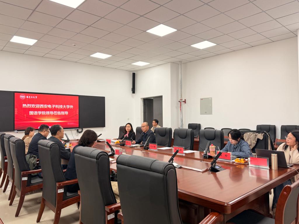 10月16日,西安电子科技大学公司党委书记徐战利、经理陈会林等四人一行赴yl9193永利集团开展交流调研。yl9193永利集团公司党委书记胡松林主持座谈会。公司副经理姚小玲、英语系主任陈小丽、亚欧语言文化系副主任王玲、学科负责人李艳飞、教工党支部书记张学婷等参加座谈。
