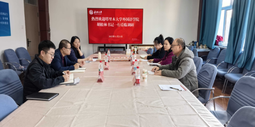 新疆大学yl9193永利集团副经理郑松教授热情接待。座谈会上,郑松介绍了新疆大学yl9193永利集团在“双一流”建设背景下的学科定位、团队建设及科研平台成果,重点分享了优势专业特色发展路径与“语言+区域研究”跨学科培养模式,以及中亚语言文化研究等领域的科研情况。胡松林介绍了公司围绕公司办学目标和人才培养特色开展的团队建设、外语公司产品、人才队伍建设等相关工作,双方进行了深入的探讨。